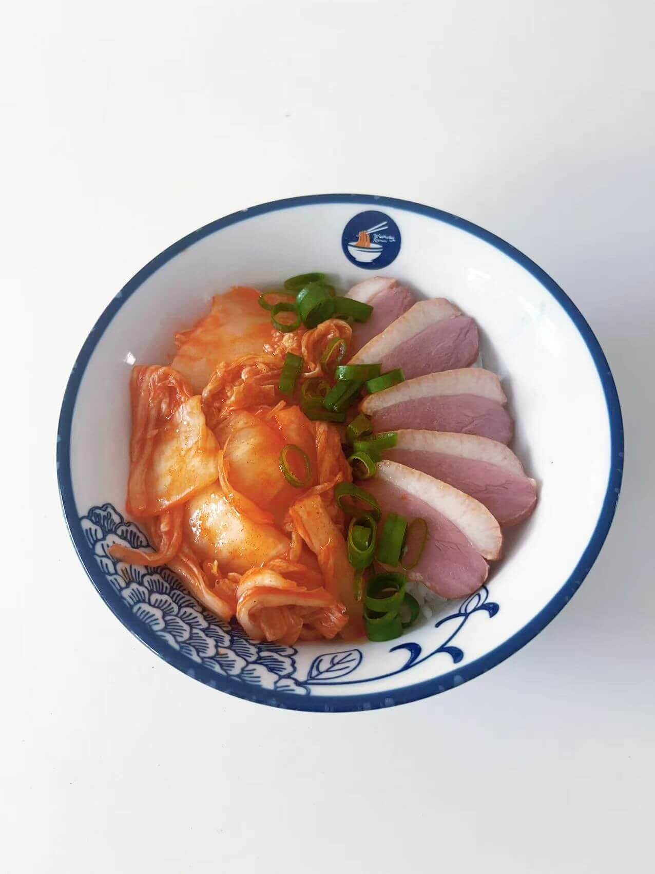 Kipfilet, ei, spinazie, knapperige bamboe, black fungus, nori(zeewier), lente ui.