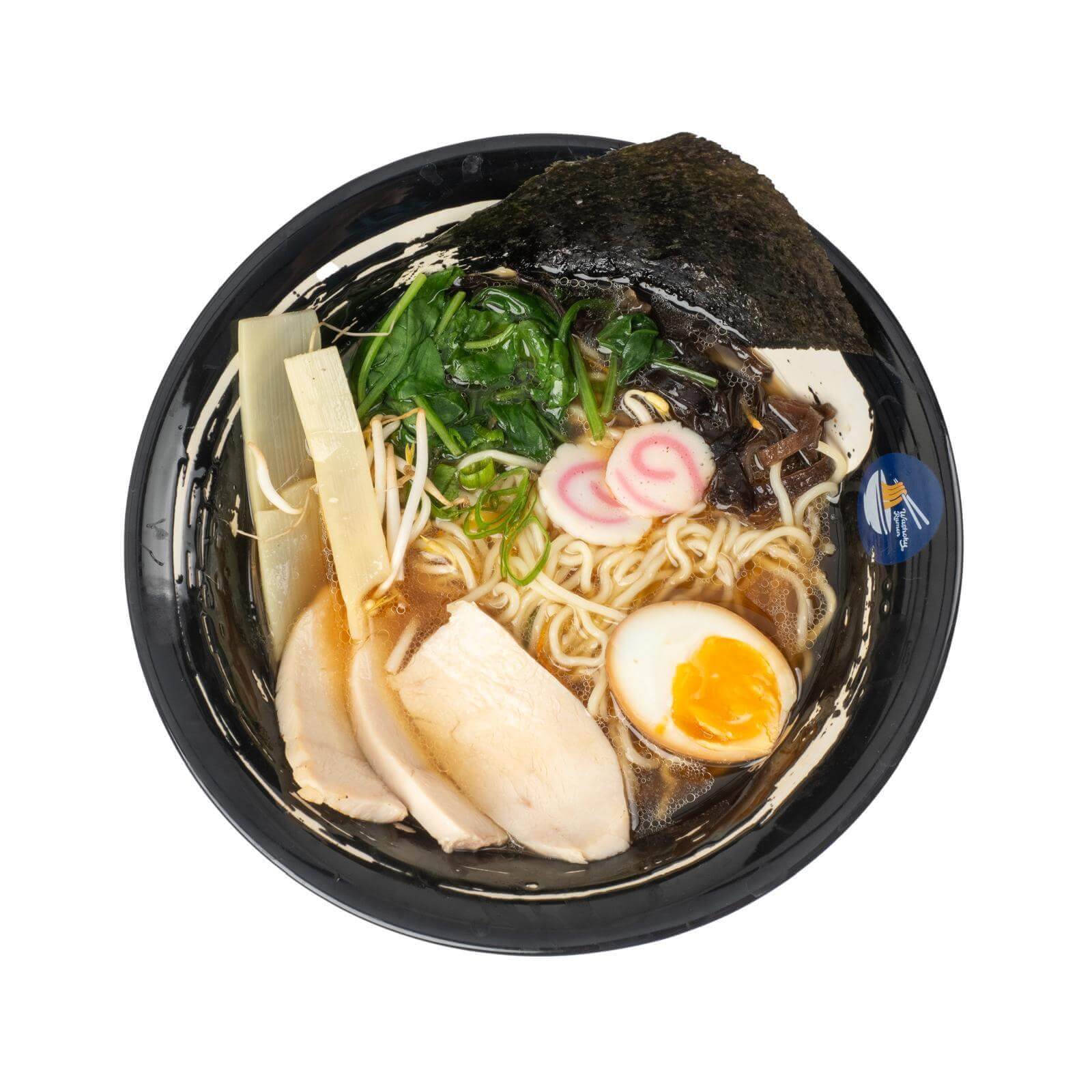 Char siu, spinazie, ei, taugé, black fungus, nori (zeewier), lente ui.